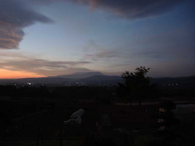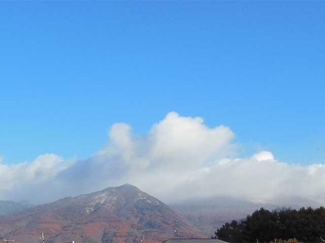 日中はだんだん天気が回復して、ほとんど曇りだったものの、一部青空が見えるくらいになった時に浅間山を見たら、また冠雪してました。