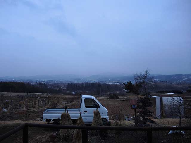 昼前に雪が降っていましたが、気温が暖かいので、降った端から溶けていました。