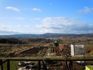 蓼科山のあたりでは雪っぽく、白く霞んでいます。