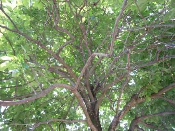 昨日のミツバチの大群は柿木の中に新しい女王が巣別れして巣を作ったのが