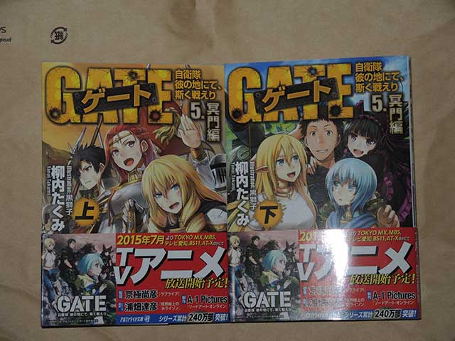 家に帰ると一昨日Amazonに頼んだ「GATE」の原作ライトノベルの5の上下巻が届いていました。