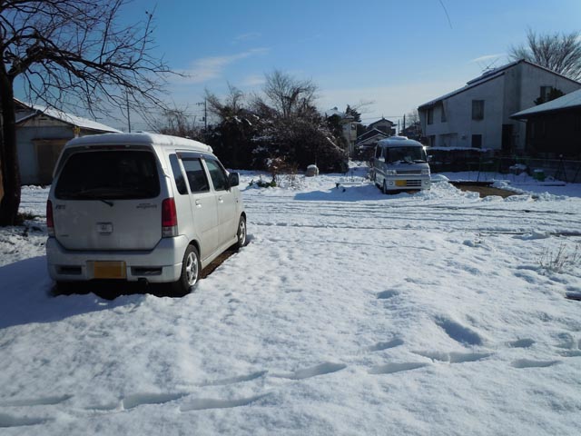 表の道に出ても、案の定、車道は溶けているけれど、歩道はしっかり残っています。