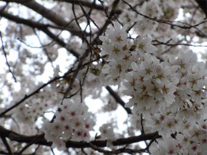 投票所の小学校の横には、無残にも枝を払われた桜の木がありましたが、![]()