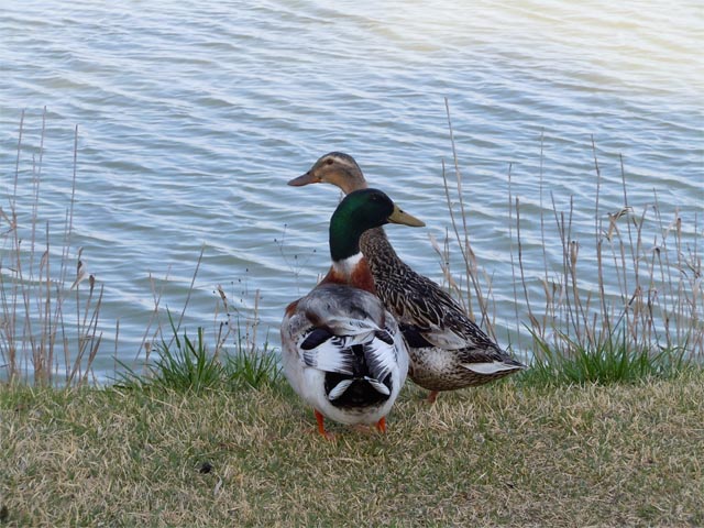 手前の池に浮いているのは鴨です。その奥には桜がたくさん。