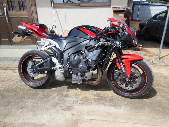 この辺りからものすごい風が吹き出して、とりあえず、CBR600RRを、風の通り道の陰に隠れる玄関前に引っ張り出して作業をしました。