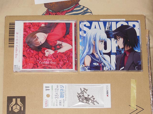 堀江由衣さんの「GoldenTime」のオープニングとエンディング。「蒼の鋼のアルペジオ」のオープニング。それからキーボードテーブルを取り付けるためのねじ。