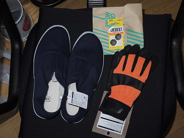 それと一緒に土曜日に会社の親睦運動大会で、体育館で履くチャイナシューズとマザーボードなどで使うCR2032ボタン電池。