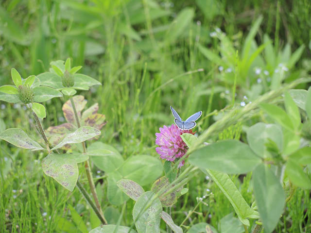 この辺の珍しい蝶の小型版が、花にとまっていました。