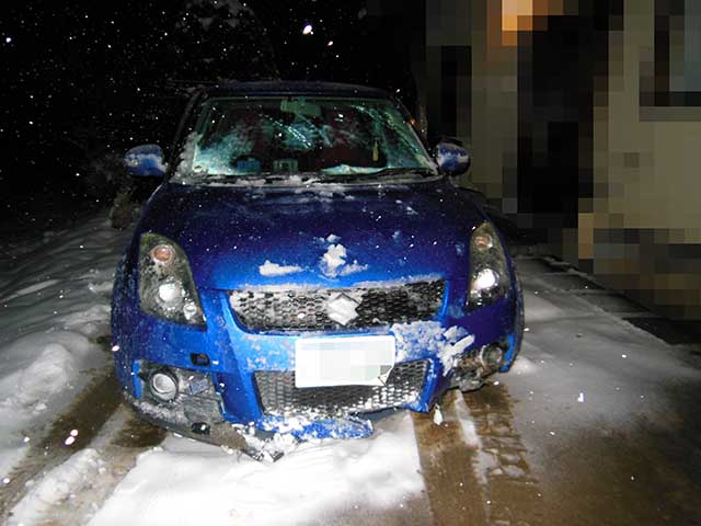 家の近くに来るまではそれなりに降ってはいたけど、道路はそれほどひどくは無かったんですが、家の近くに来たら、かなり滑る雪が道路にも積もっていて、S字カーブの2つ目の出口でフロントが滑り始めてそのままスピン。