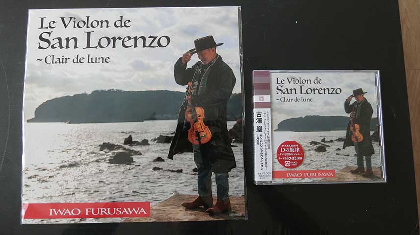 中身はヴァイオリニストの古澤巌さんのストラディバリウスのサンロレンツオを弾いて録音した楽曲のCDのAmazon仕様のメガジャケ付き。(EX-100撮影)