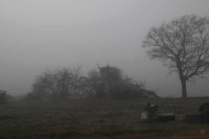 デッキの手すりにも霜が降りて白くなっていました。(Z5撮影)