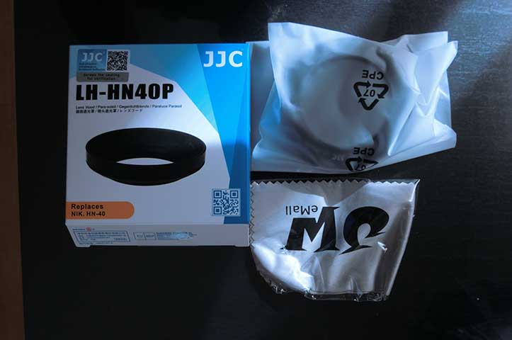 Amazonの評価のところに、このフードをつけるとフィルターやフードやレンズキャップが付かないという書き込みがあったので、ちょっと心配しましたが、商品ページに書かれている通り、レンズフィルター、レンズフード、レンズキャップの通りに取り付ければ問題なく全て取り付きました。