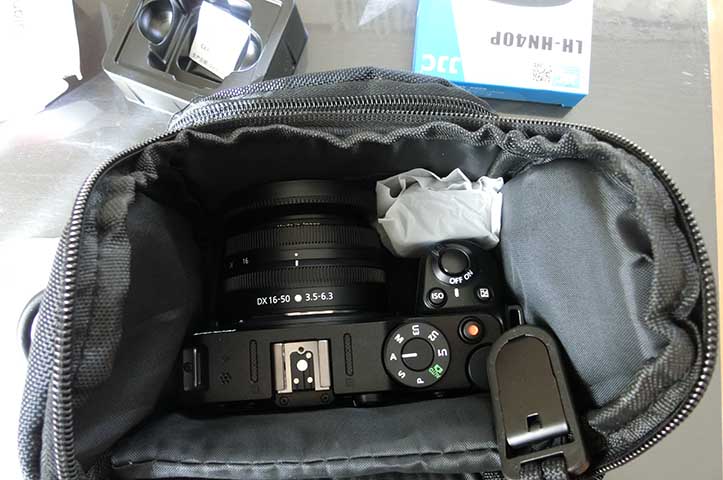 フードが付くことで更に厚みが増したので、バッグの中の仕切りを2枚立てていたのを1枚は下に敷き、丁度良い厚みになりました。(EX-100撮影)