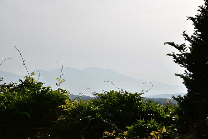 浅間山は山頂と麓が濃い雲に覆われ、それ以外の部分もかなり霞んでいました。(D5600撮影)