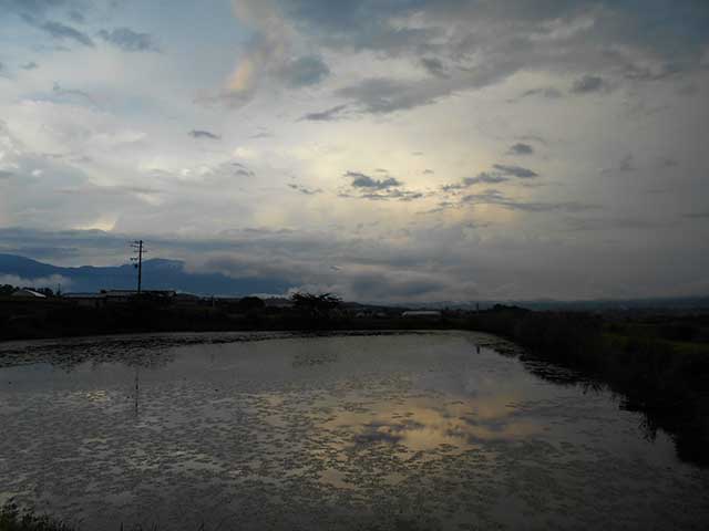 青空が見えるところがあるものの、雲の色がねずみ色をしているところがあり、少し心配しました。
