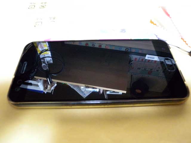 本体のケースは単にはめるだけなので、そんなに気を使わないのですが、ディスプレイの保護強化ガラスフィルムは貼り付ける面に手の油や指紋を残すと面倒なのでとても気を使う上に気泡が残ると嫌だなと思っていたんですが、保護強化ガラスフィルムの箱の中に入っている施工指示書通りにガラスフィルム自体を保護しているフィルムを付けた状態で正しい位置に重ね合わせた状態で位置決めシールで貼り付けておいてから、半捲りして保護しているフィルムを剥がして重ね合わせるとあら不思議(ってほどでもないが)、端からきれいに中の空気が抜けて行ってきれいに貼り付きました。