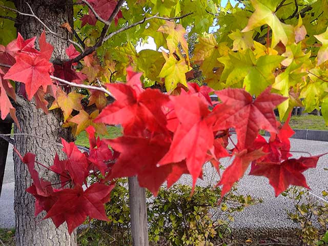 職場近くの公園の道端のイチョウがほんの一部だけですが色づいてきていました。(ミニデジカメ撮影)
