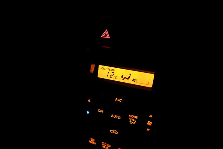 土日祝日の閉館時間まで働いて家に帰り着いた時の車内から撮った風景。(Z30撮影)