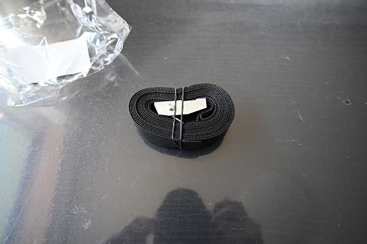 三脚の足が広がりすぎないようにと買った押さえ金具付き紐。(Z30撮影)