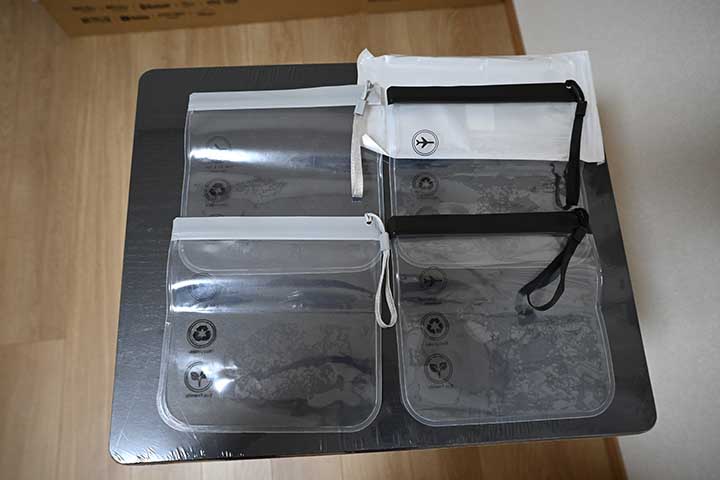 対液体漏洩防止。飛行機に洗顔道具を持って行くのに洗顔道具を入れるのに使うのだそうです。別段飛行機に乗る予定はないのだけど、入院するのに洗顔道具一式を持って行くのに買いました。