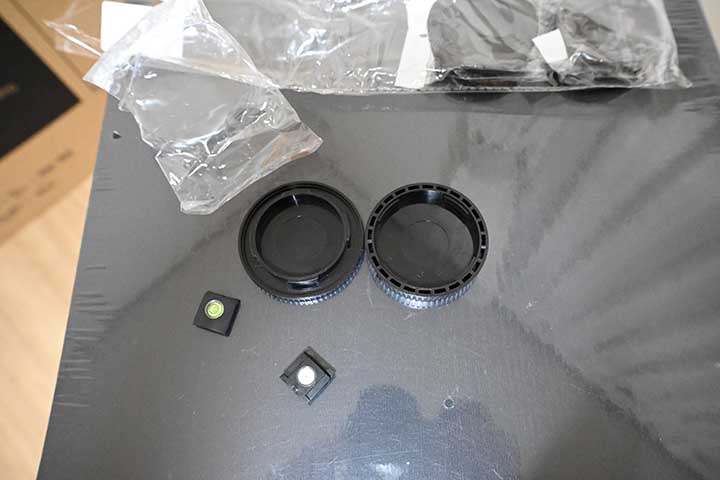 Zマウントのボディキャップとレンズの背面キャップ。(Z30撮影)