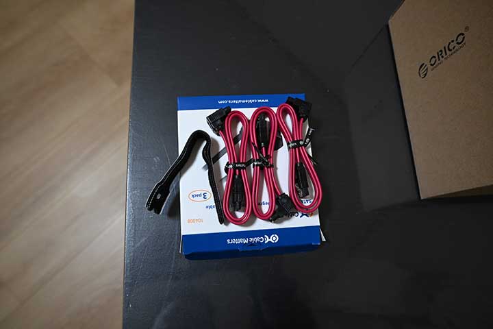 左は多分どこか探せばあるのだけど、足の踏み場のない荷物に埋もれて何処にあるか分からないSATA ケーブル。(Z30撮影)
