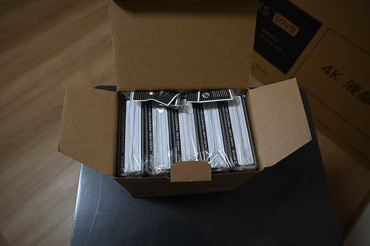 右の大きい箱は3.5インチの内臓HDDを入れておく箱×5。(Z30撮影)