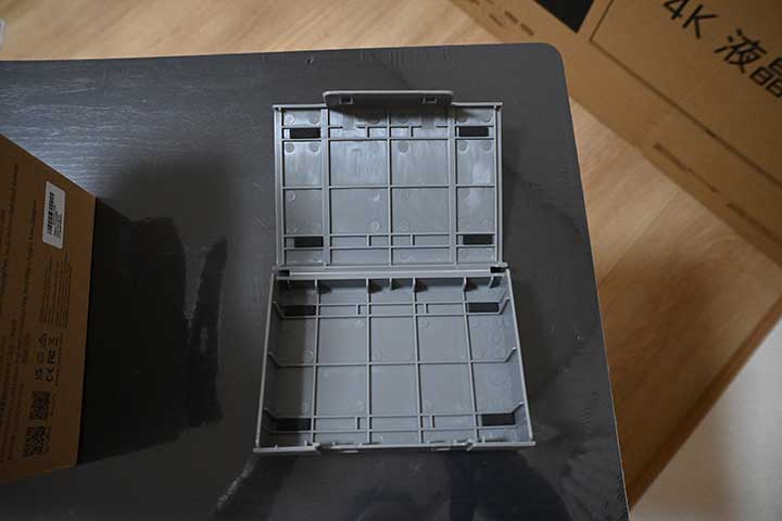 プラスティックでできたただの箱ですが、これがあるのとないのとでは収納が安心できません。(Z30撮影)