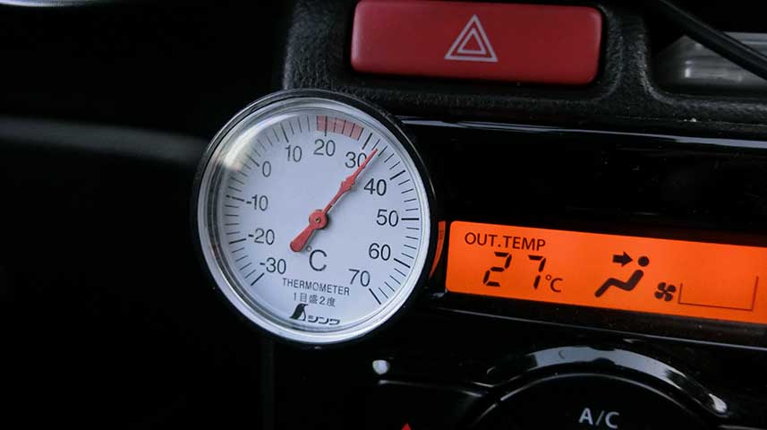 この時の車外気温と車内気温。(EX-100撮影)