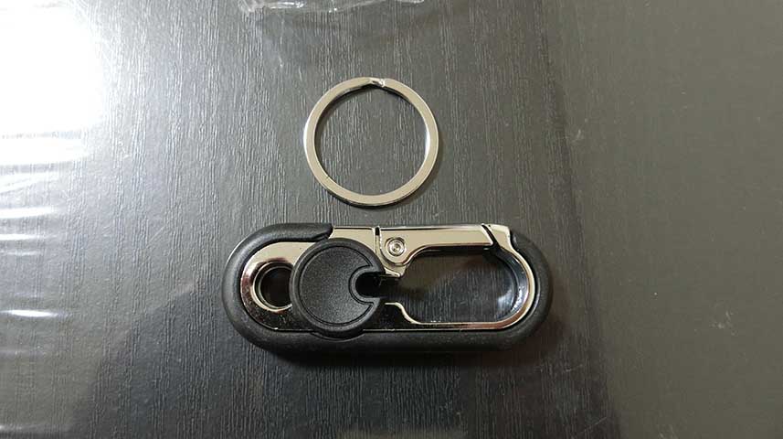 一番上の左から2番目は、カラビナクリップキーホルダー。(EX-100撮影)