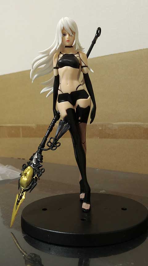2Bはうんとデカい立ち姿や小さい座り姿があるし、9Sも小さい座り姿があるけど、A2は座り姿はあるけど、立ち姿も欲しいということで。価格の都合で2Bの立ち姿よりもかなり小さめだけど、精巧に出来てるから良いでしょう。