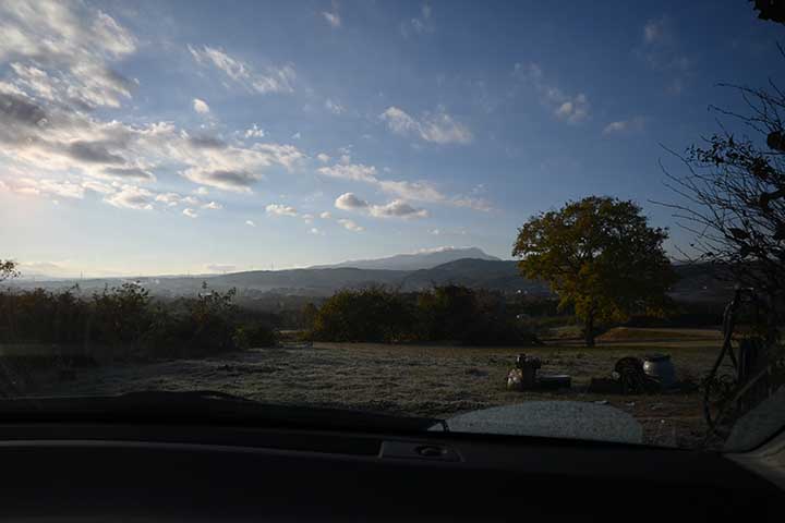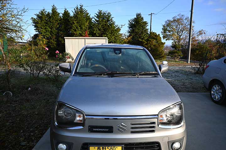 アルトも霜でフリーズしていたのが、朝日が出てきて日の当たり始めたフロント部分が融けてきて水滴でびしょ濡れでした。