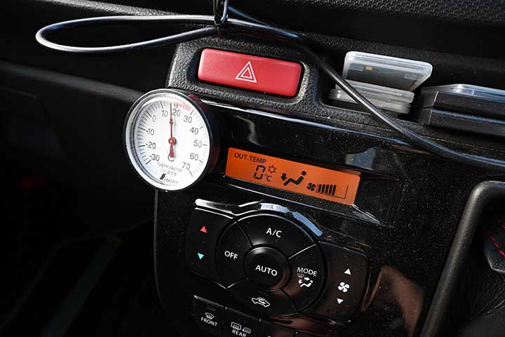 で、日が当たり始めたので車体が温まって、家では外気温は4度だったんですが、ひとっ走りして会社に着いた時の車外気温は0℃でした。(Z30撮影)