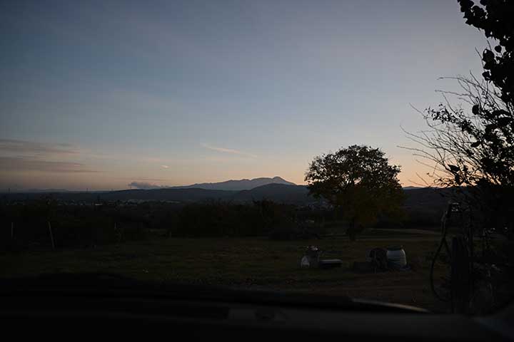 実際の起床時間はもう真っ暗の季節になったのですが、ISO12800でF2.8で撮ると空がこんなに明るく写ります。ま、右の方の空には星が写っているんですが。