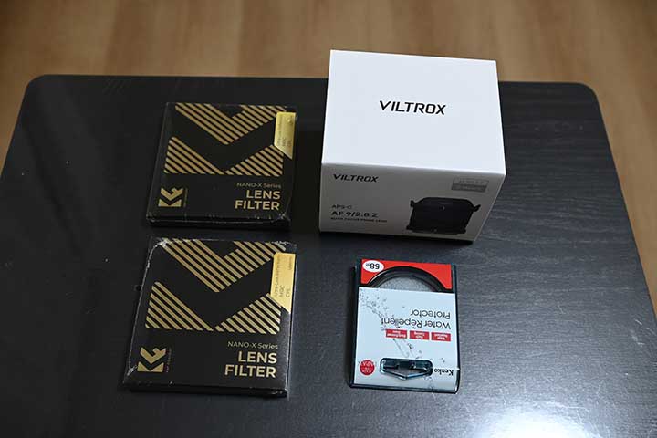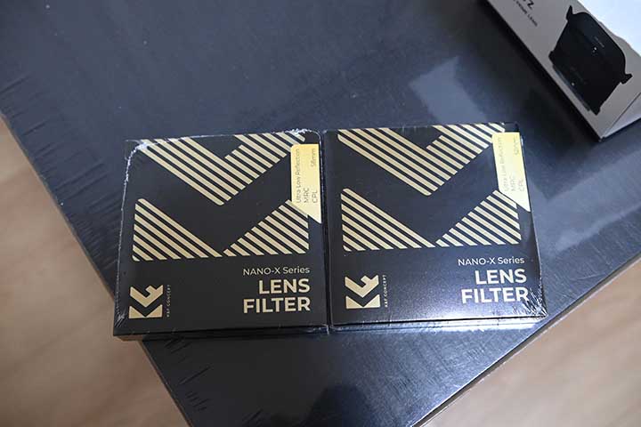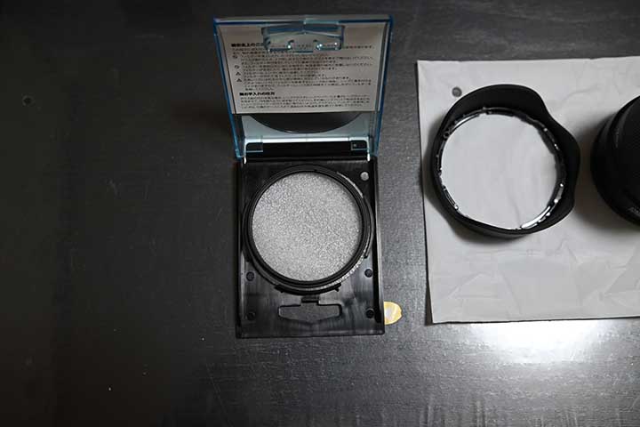 一緒に届いたkenkoの保護フィルターをレンズに付けます。(Z30撮影)