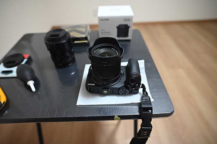 焦点距離が9mmとかなり広く、APS-C用のレンズなので、35mm換算しても13.5mmと、今までZ5につけているフルサイズ用のAF 20mm F2.8が家にある最大広角レンズだったんですが、それに輪をかけた広さになっています。