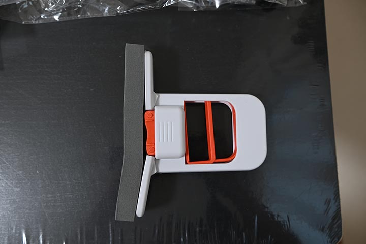 先日買ったのと構造は同じでレバーを引っ張ると勝手にモップ部が搾れるというもの。